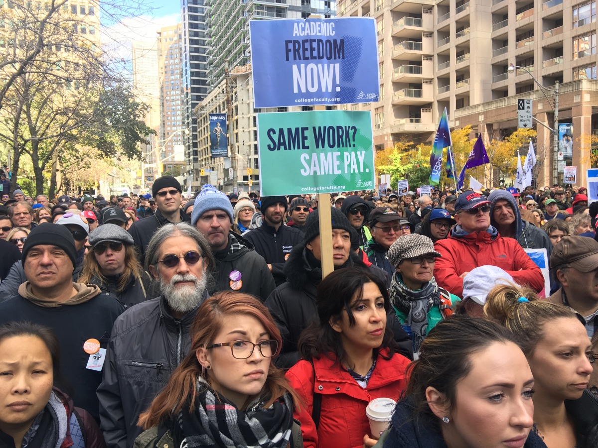 “The idea that one is connected to an institution like George Brown College creates the impression that we are secure, that we have good jobs,” Sookermany said. “And the idea of good job is really not enough. Decent work is what we need, equal pay for equal work is really what we’re looking for.”