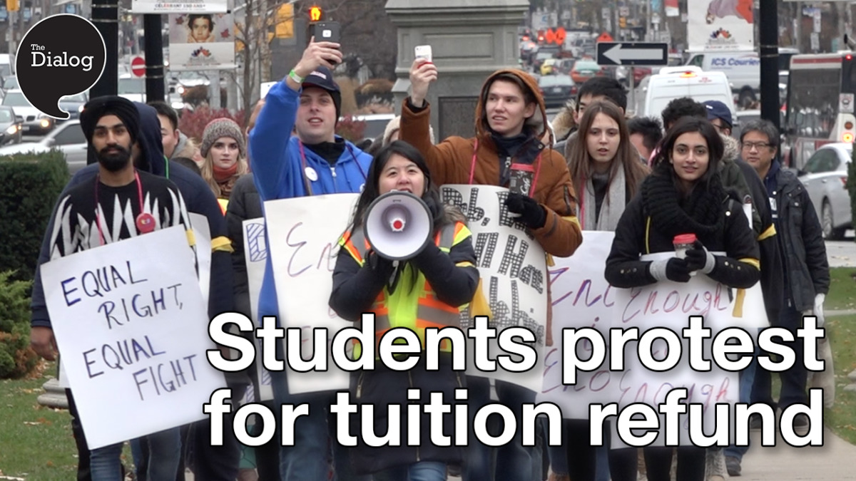 Students rally at Queens Park calling for tuition refunds